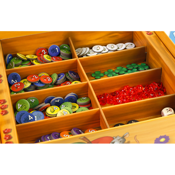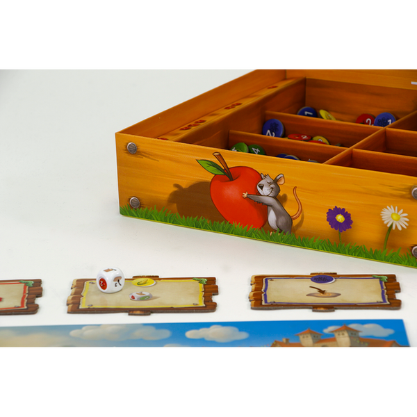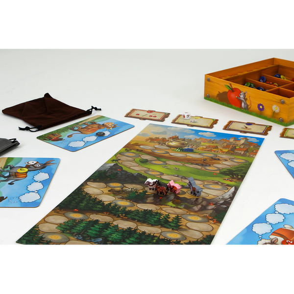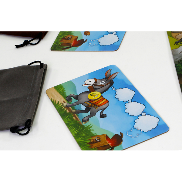 Grabbel naar voer in een race rond Kakelenburg! Je rijdier heeft de juiste middelen nodig om de andere spelers voor te blijven. Met suikerbieten schiet je vooruit, maar van droomkruiden valt je rijdier juist in slaap. Net als bij het originele Kwakzalvers verzamel je steeds meer fiches om zo een goedgevulde grabbelzak te creëren. Dankzij gestroomlijnde regels ideaal voor jongere spelers!