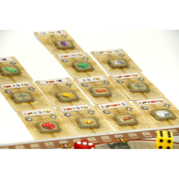 "De Rode Kathedraal" is een strategisch bordspel waarin spelers bouwteams leiden om St. Basil's kathedraal in Moskou op te richten. Leid jouw team, wijs secties toe, stuur middelen en voltooi de bouw, terwijl je je rivalen omzeilt. De tsaar kijkt toe en alleen de meest bekwame bouwer zal zijn gunst winnen. Met een prachtig eerbetoon aan de kunst van Ivan Bilibin biedt dit spel toegankelijke regels en diepgaande strategie voor uren speelplezier.
