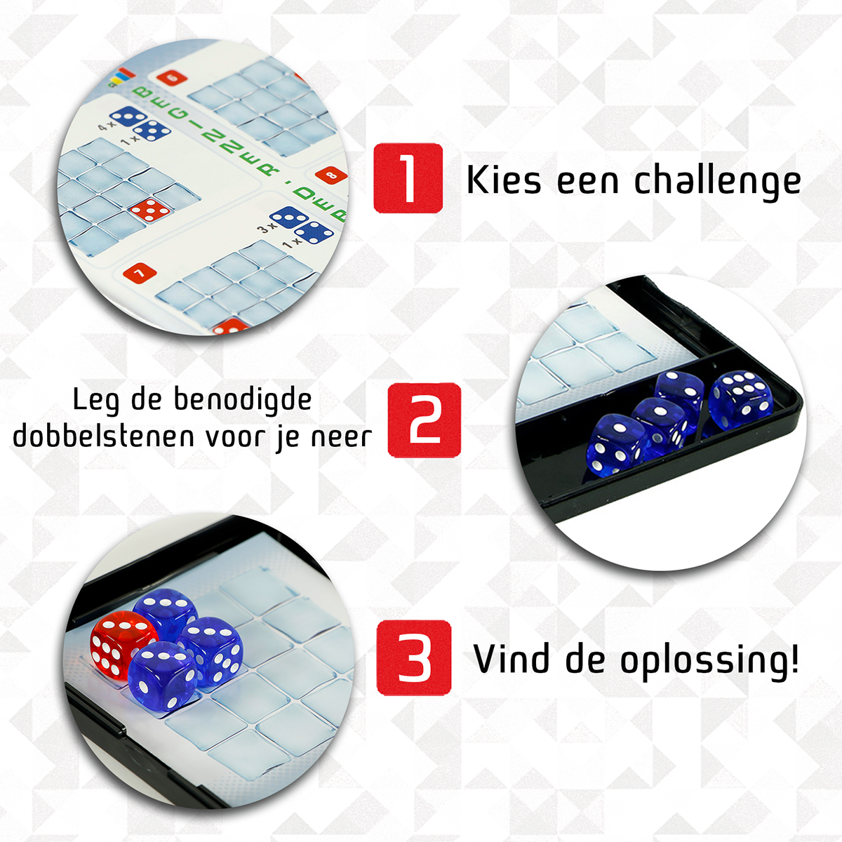 Coole, uitdagende logische puzzel! Zet 8 dobbelstenen zo neer dat elk ervan aan zoveel dobbelstenen grenst als het aantal ogen erop. Met maar liefst 80 uitdagingen in verschillende moeilijkheidsgradaties!