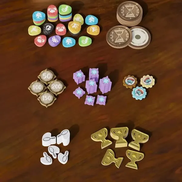 Met deze luxe componenten wordt jouw versie van Wondrous Creatures nog mooier. In dit pakket vind je prachtige houten componenten zoals houten eieren, plaatstokens, score tokens, energie tokens, doeltokens en nettokens. Daarnaast zitten er ook 18 metalen trofeeën in, waardoor het spel nog meer tot leven komt.