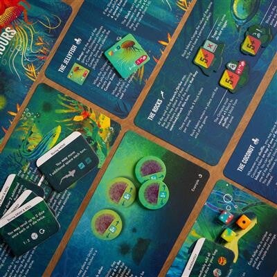 Deze uitbreidingen kunnen naar wens worden gecombineerd, afzonderlijk worden gebruikt of zelfs gestapeld. Verander het speelbord, rij op een kwal en beleef de spanning opnieuw. Maak je klaar voor nog meer avontuur onder de zeespiegel!