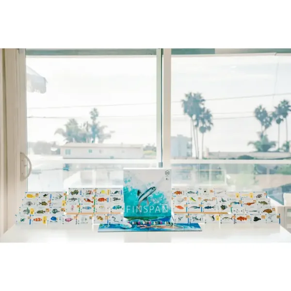 Finspan is een toegankelijk bordspel voor mensen die tijdens een spel graag een motortje opbouwen en van veel variatie houden. Het spel is op het wereldberoemde vogelspel Wingspan van Elizabeth Hargrave gebaseerd, die ook aan dit spel heeft meegewerkt. Finspan is eenvoudig te leren en kan een uitstekend opstapje zijn naar het iets pittigere Wingspan en het uitdagende Wyrmspan!