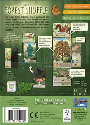 In Forest Shuffle plant je bomen in jouw bos en voeg je verschillende dieren, planten en paddenstoelen toe. Hiermee creëer je een leefgebied voor planten en dieren dat ecologisch in balans is.