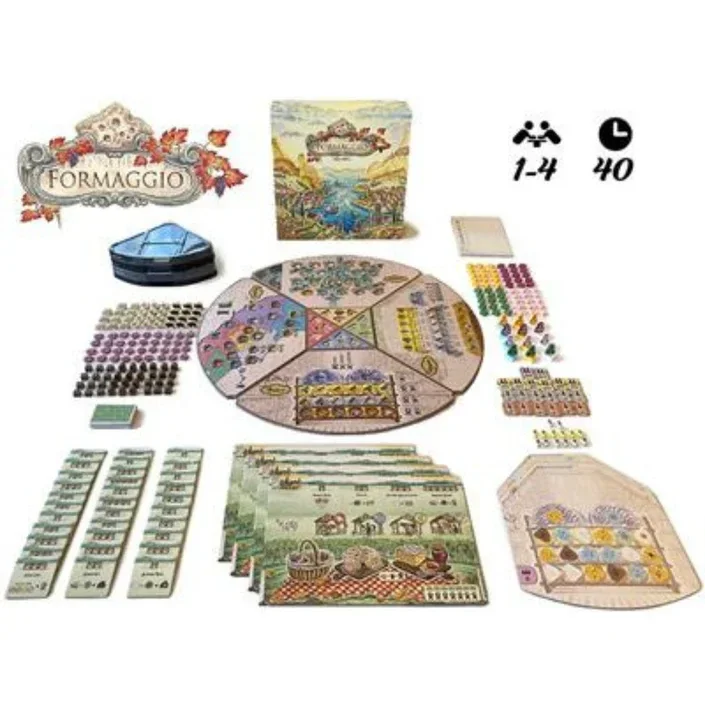 Formaggio is een opzichzelfstaande uitbreiding voor Fromage. Door beide spellen te combineren, kun je willekeurig 4 bordkwadranten samenstellen en elke combinatie van structuurtegels draften, wat zorgt voor meer variatie en meerdere routes naar de overwinning.