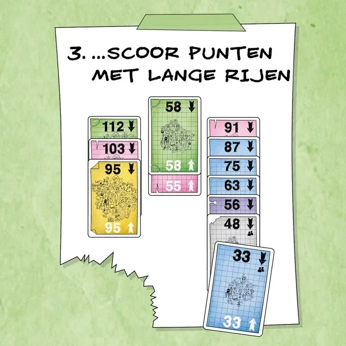 In dit vlotte kaartspel probeer je oplopend of juist aflopend reeksen te maken. Verzamel kaarten in dezelfde kleur om zoveel mogelijk punten te scoren. Klinkt simpel? Mooi niet!
