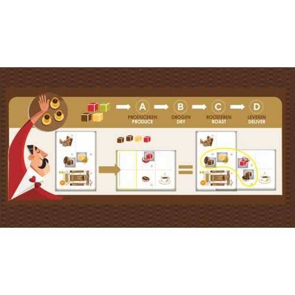 In Café leiden spelers bedrijven die koffie produceren, drogen, malen en leveren bij de meest exquise koffiebars in de Portugese Bélle Époque. In elke ronde maak je een afweging hoe je jouw handelsgebied en koffieproductie creëert. Wie van de spelers heeft na 8 rondes de beste productie keten gemaakt en scoort de meeste punten?