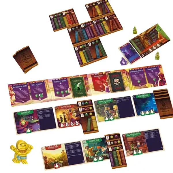 In Ex Libris ben je een verzamelaar van zeldzame en waardevolle boeken in een bloeiende fantasie-stad. De burgemeester heeft zojuist aangekondigd dat er een nieuwe zetel in de Dorpsraad is, namelijk die van de Grootbibliothecaris. Deze prestigieuze en lucratieve positie zal worden toegekend aan de burger met de meest buitengewone bibliotheek! Helaas zijn enkele van je boekencollectie-collega's (meer bekenden, eigenlijk) ook kandidaten.