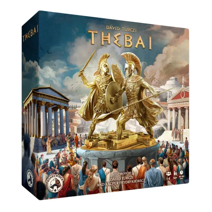 Thebai is een interactief, zwaar eurospel dat het mechanisme van dobbelsteen-plaatsing op een vernieuwende en tactische manier benadert. Spelers creëren samen de beschikbare acties op het hoofdspelbord, terwijl ze hun persoonlijke vaardigheden en langetermijnstrategieën zorgvuldig beheren.