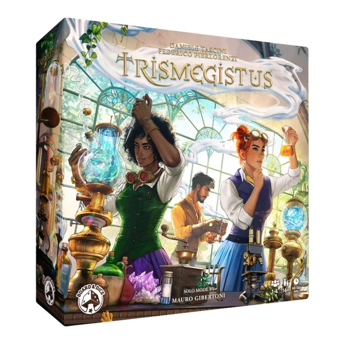 In Trismegistus kruipen spelers in de huid van 19e-eeuwse onderzoekers die de notities van Trismegistus hebben ontdekt en proberen zijn formule voor het maken van de Steen der Wijzen te volgen. In de loop van drie rondes, die de jaren van hun promotie vertegenwoordigen, voeren zij uiteenlopende experimenten uit en winnen en transmuteren zij metalen met behulp van mysterieuze artefacten. Aan het einde van het spel krijgen spelers punten op basis van hun gepubliceerde onderzoek, hun kennis van de oerelementen en hun voortgang richting de creatie van de Steen der Wijzen zelf.