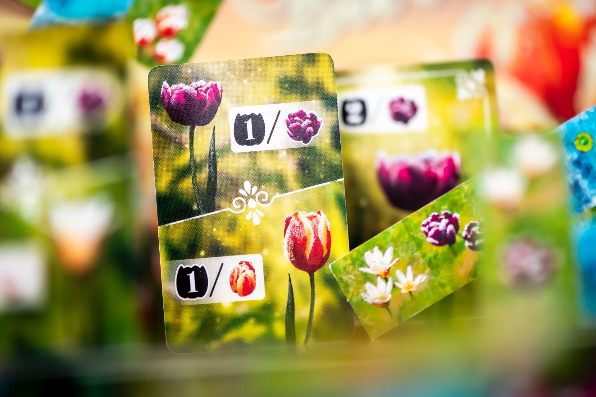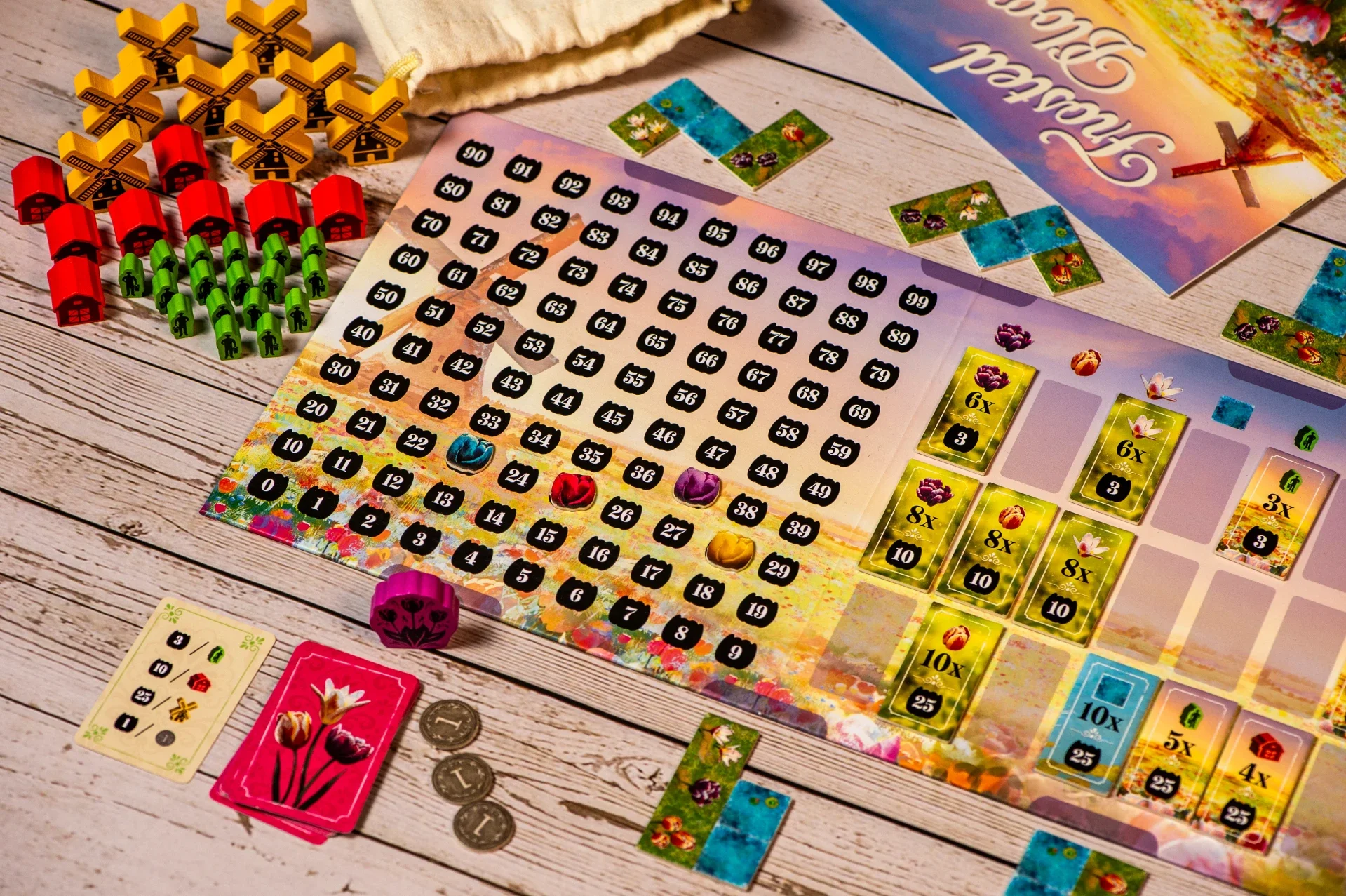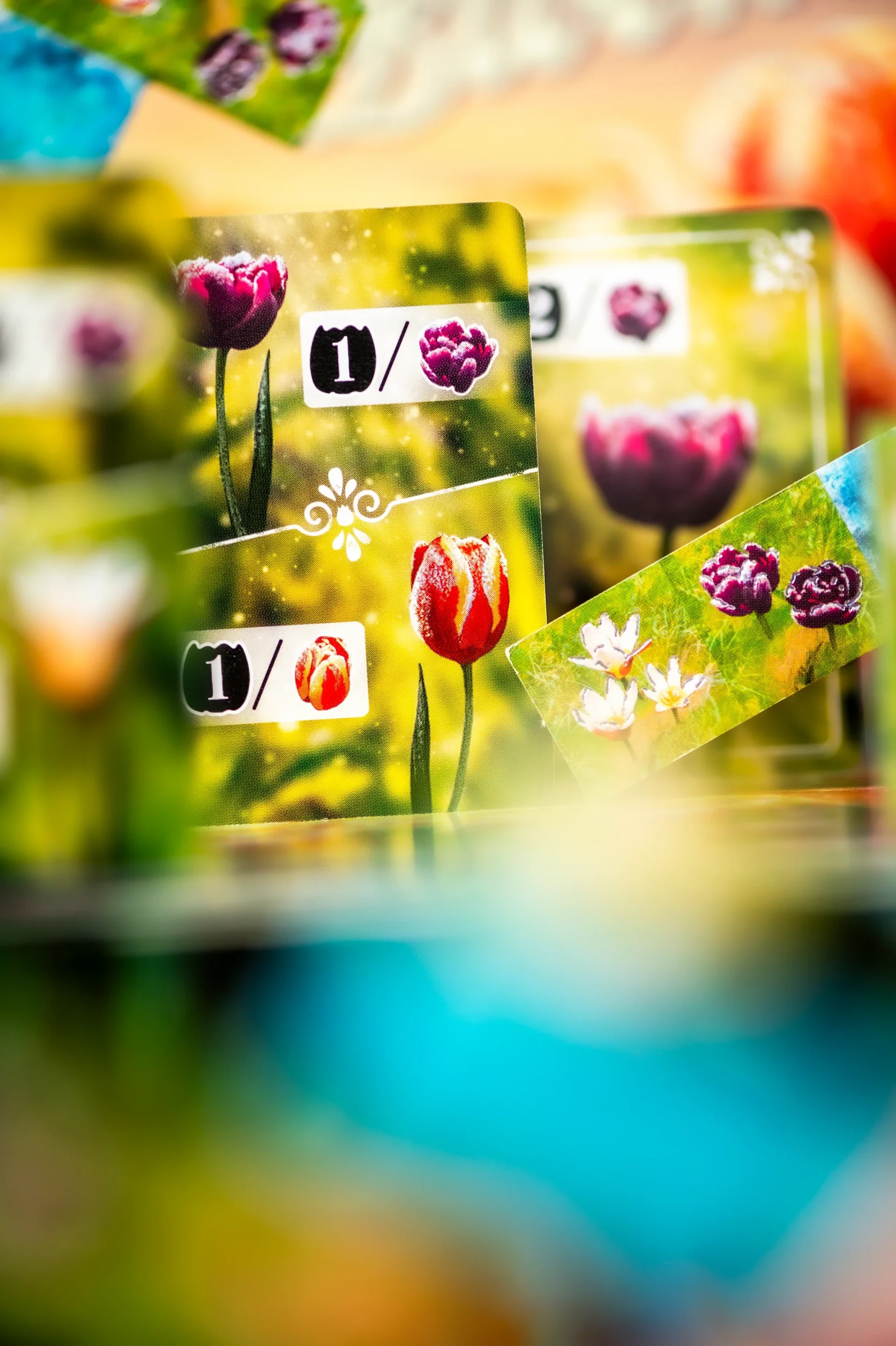 In Frosted Blooms proberen spelers in 10 rondes de meest harmonieuze en waardevolle tulpentuin te maken.