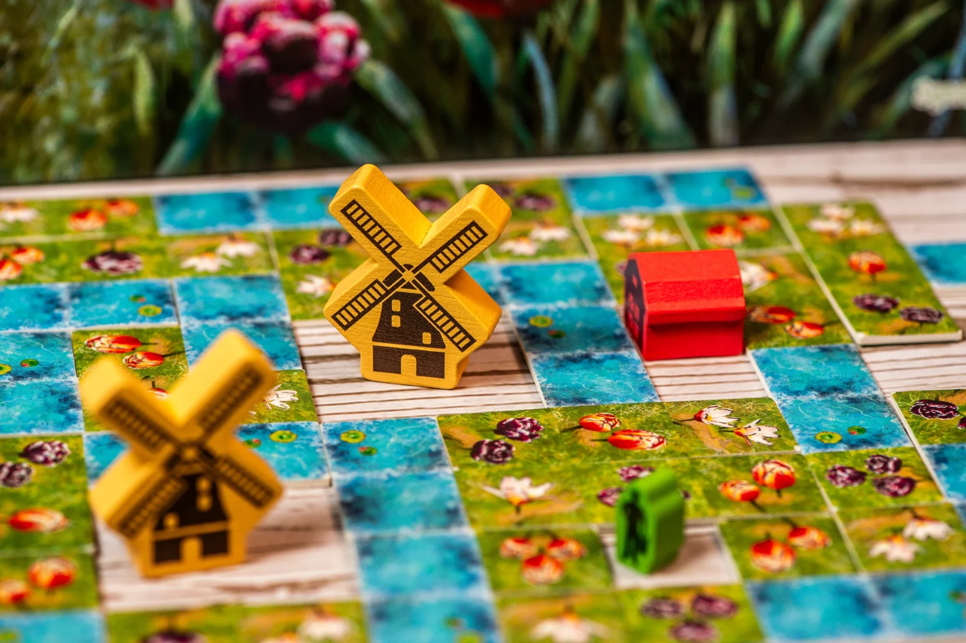 Omsluit je lege vakken, dan vul je die met werkers, schuren of molens om aan het einde van het spel flinke bonussen te verdienen.