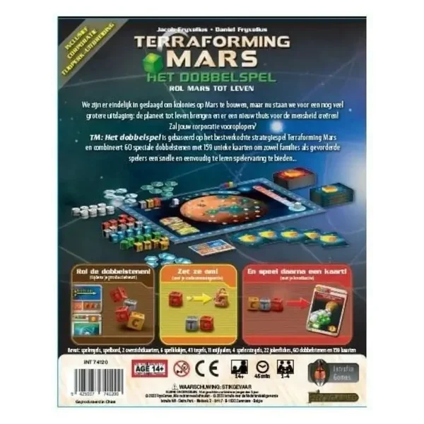 Terraforming Mars: Het dobbelspel is gebaseerd op het bestverkochte strategiespel Terraforming Mars en combineert 60 speciale dobbelstenen met 159 unieke kaarten om zowel families als gevorderde spelers een snelle en eenvoudig te leren spelervaring te bieden...